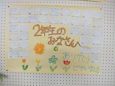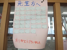 6年生を送る会を終えて、6年生から各学級にありがとうメッセージが届けられました。