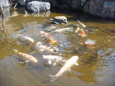 だんだん暖かい春がやってきました。池のコイもウサギたちも元気です。