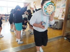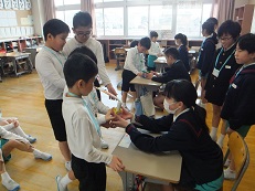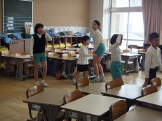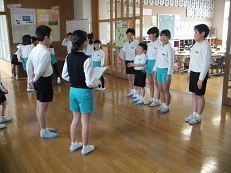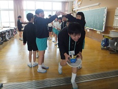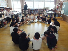 次期リーダー5年生の指導のもと、一緒にハンカチ落としをしてから、お互いそれぞれに感謝の気持ちを伝えました。