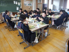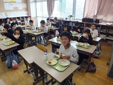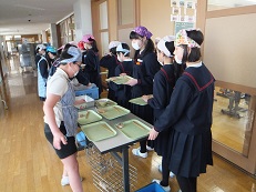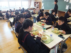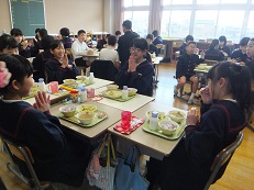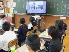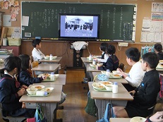 今日の給食時間は、ダンスクラブの人たちが校舎前で踊っている動画をテレビで見ながら給食を食べました。