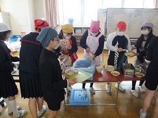 給食センターの皆さんには、いつも美味しい給食を作っていただいています。〔写真は紅白汁大盛りです。)