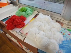2年生は、お花紙で飾りの花を作ってくれました。