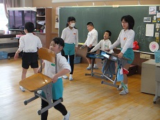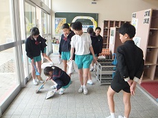 掃除は、1年から6年までのなかよしグループでしています。