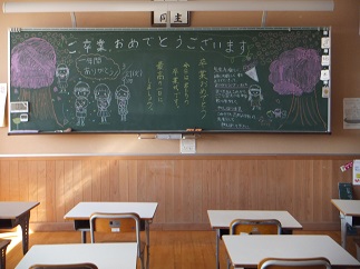 卒業式を終えて、お祝いメッセージはまだありますが、今日からさみしい教室になりました。
