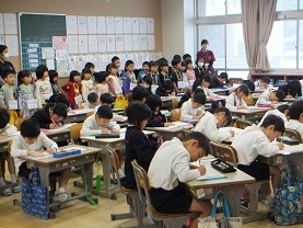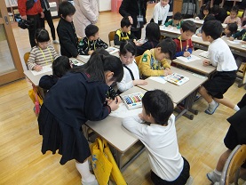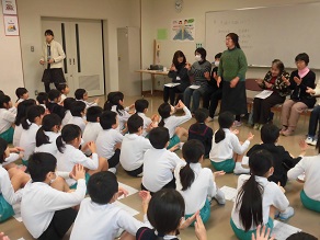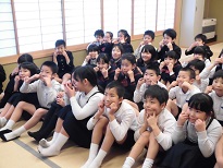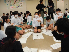 2月1日、4年生は、福祉の学習の一つとして、高松の手話サークル「あやとりの会」の皆さんから、手話を教えていただきました。言葉を声として出さなくても自分の気持ちや考えを伝えることができることを教えていただきました。