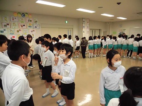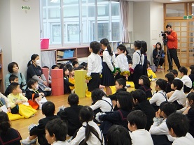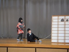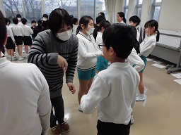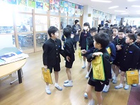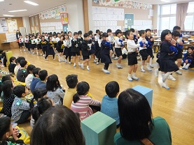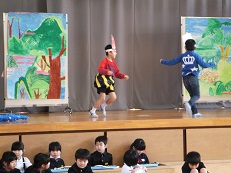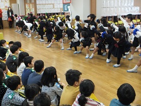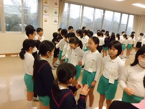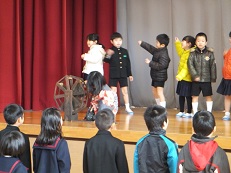 2月3日一年生は、4月に入学する子どもたちと「新入学児ふれあい会」を開催しました。授業参観やダンスの披露、学習について教えるなどなど、一年生にとっては、お兄さんお姉さんらしく頑張らなければと緊張の時間でした。
