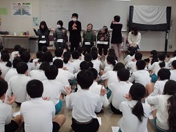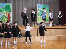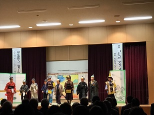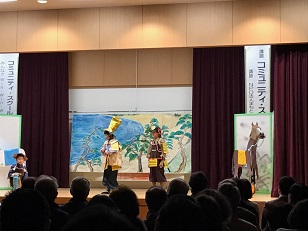 2月11日(土)に、コミュニティシンポジウムが高松産業文化センターで開催され、本校の児童12名が活躍する 児童劇団「三郎左衛門」による『櫻井三郎左衛門の戦い』が上演されました。難しい台詞も軽々こなし、堂々と演技する児童たちに、参加者の皆さんから大きな拍手をいただきました。