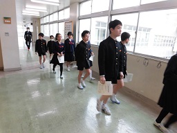 生徒会からの学校紹介を聞いたり、授業参観をしたりと、緊張の午後でした。