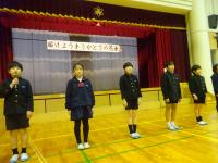 卒業式の日が近づいてきました。連日,6年生は卒業式の練習を頑張っています。入退場,歌,別れの言葉など,児童が自分たちで改善点を考え,良い式にしようと進んで動いている姿が見られます。
