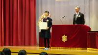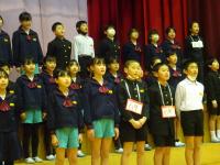 今年度の清水賞は,3名の6年生が受賞しました。日頃から,学校のために,みんなのために進んで行動している姿が認められました。全校の子どもたちからも,「おめでとう」の温かな拍手が贈られました。