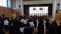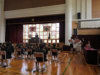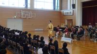 コンサートでは、指揮者の方がマツケンサンバを踊ったり、みんなでジブリメドレーで体操をしたり、ジャンボリーミッキーを踊ったりと、子どもたちを楽しませる工夫が盛りだくさんでした。運動会などで踊った曲が流れると、嬉しそうに席でちょっぴり踊っている子もいました。アンコールでは、勇気100%を演奏してくださり、子どもたちは手拍子をしたり歌を口ずさんだりして大満足の時間を過ごすことができました。また、コンサートの中で、「いかのおすし」についても教えていただき、児童の防犯意識も高まったと思います。