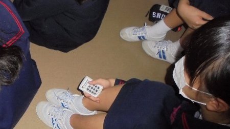 また、一人ひとりに写真に写っているテレビのリモコンみたいな機械が配られ、質問に答えると高小6年生がどんな意見なのか画面にパッと表示されるのにもびっくりしました。