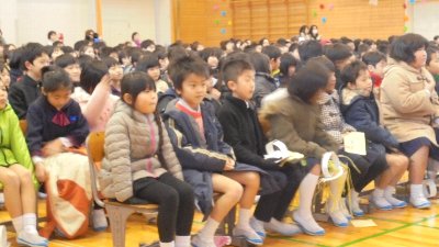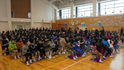 5限目の全校集会では、インフルエンザに負けずにじょうぶな体ですごしていることをほめられました。この調子でうがい、手洗い、早寝早起きを続けられると良いですね。他にもプログラム委員会からは、ペットボトルのふた集めでたくさんの命が救われたことの報告がありました。ご家庭での協力ありがとうございます。また、生活目標の話は、今年1年間のふり返りでした。
