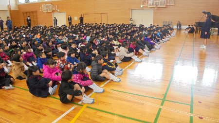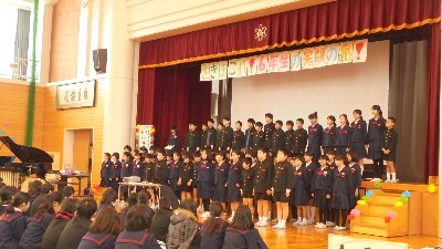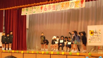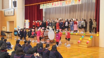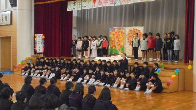 2月26日金曜は、「6年生を送る会」が行われましたでした。 素敵な送る会になりました。どの学年の出し物も素晴らしかったです。一生懸命練習しました、学習の成果が発揮できました、心を込めて感謝の気持ちを表しました。6年生の出し物(感謝と決意の合唱)も感動的でした。子どもたちの足下にも及びませんが、教職員も歌をプレゼントしました。ステージから6年生一人一人顔を見ていると、涙ぐんでいる子どもがたくさんいてこちらも感動しました。この感動をきっと卒業式でもう一度味わえることでしょう。感謝する心、優しい心が確実に成長していることを感じさせられた送る会になりました。