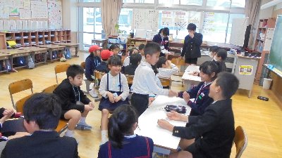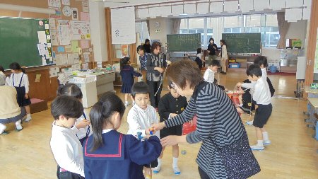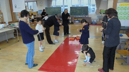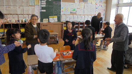 午前中2.3限に1年生が地域のお年寄りと「昔遊び」を楽しむ会がありました。こままわし・羽子板・おじゃみ・けんだま・かるたなどなど。今は、めずらしくなった遊びがたくさんあるのですね。こうして遊びを通してお年寄りと交流していくことは、たいへん意味のあることです。そして何より楽しいことです。