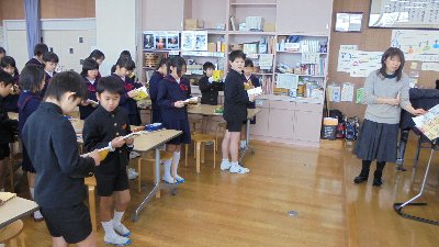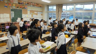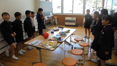 昨日、第2会議室から歌や楽器の演奏が聞こえてきました。音楽の授業かな!?のぞいて見ると4年生の総合的な学習の時間でした。今日、地域のグループホームを訪問して、お年寄りと交流するための出し物だそうです。きっと子どもたちの歌や演奏を気に入ってくれると思います。