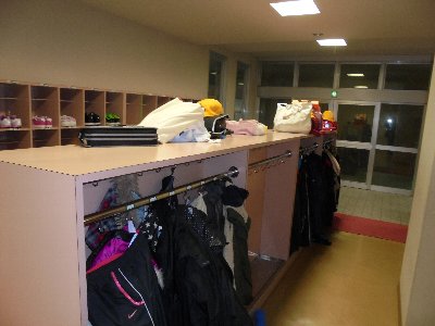 冬休みが終わり2週間ぶりの登校、新年3学期のスタートです。朝から冷たい雨が降り、登校するのも一苦労でした。特に学期始めなので持ち物が多く、書き初めが予定されているので習字セットを重そうに持っていました。閑散としていた玄関の雨具かけはびっしりとすきまなく・・・