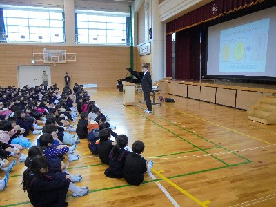 後半は児童集会、飼育委員会とプログラム委員会が、それぞれうさぎのクイズとユニセフ募金のお知らせをしました。来週は募金があります、どんなことにそのお金が使われるのか子どもさんに聞いてみて下さい。言えたら募金OK(笑)