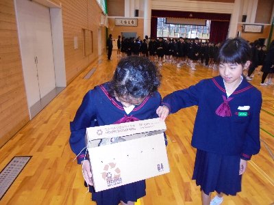 となりでは、プログラム委員が「ユニセフ募金」を始めました。今日から3日間行います。お家で募金の意味を話合われてからご協力お願いします。