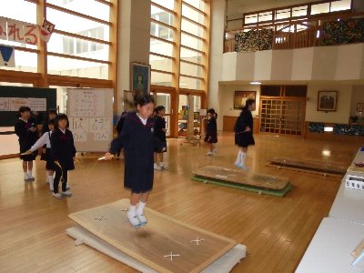 今年も玄関ホールになわとびジャンプ台が設置されました。これを使うと「二重跳び」などの難しい技がかんたんに?できるようになります。人気があるけどみんな順番を守って仲良く使っています。こういう所にも高松っ子の良いところが見られます。