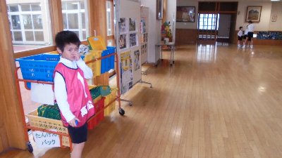児童会の委員が、昼休み校内を走るこどもが減る取組としてパトロールしています。昨年までは、走った子どもを注意していたのですが、ことしはちょっと変わっています。きちんと歩いている子どもの数を数えて放送で紹介します。「赤いゼッケンを見かけたら歩きましょう」です。