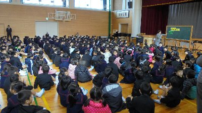 表彰が2つありました。「いしかわっ子駅伝大会」男女優秀な成績、区間賞も2つ、それぞれ全校児童の前で賞状を渡しました。もうひとつは塚本姉弟が「親子の手紙」コンクールでたいへん優秀な成績を修めました昨年はおばあちゃんとのやりとり、今年は父母とのやりとりでした。ほのぼのとしたとっても良い作品でした。こんどこのコーナーで紹介できればと思っています。校長からはいつもは昼の放送で発表している短作文の講評を対面でしました。伝える力、表現する力を育てています。やはり面と向かってほめられることは、うれしいことです。