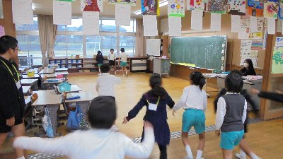 1年中、毎朝、あいさつ運動をしています。今は、なかよしグループ(1~6年が混じり合ったグループ)で行っています。次は、クラスごとに毎朝玄関に出て挨拶運動をします。クラスごとの工夫で玄関からはなれたいろいろな場所であいさつを呼びかけます。