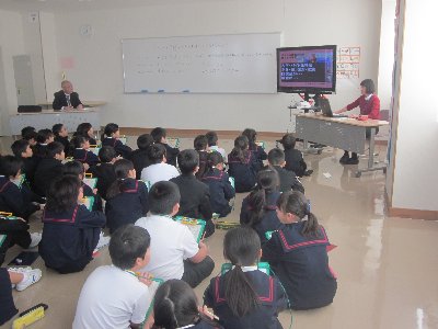 11月25日 大海小5年生と総合的な学習の時間や社会科で調べたことを伝え合って交流しました。