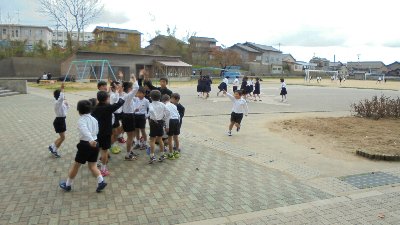 高小の子どもたちはみんな仲良しです。 今日の長休みは「鬼ごっこするものあつまーれ」のかけ声の下いろんな学年の子どもたちが集まって遊んでいました。サッカーをしているグループも見えますね。校舎の中ではみんなが外に出てあいたスペースで長なわ、楽しそうでした。