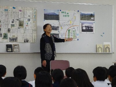 6年生は、国語の学習で地元の細川律子先生にお世話になりました。細川先生は子どもたちを「宮沢賢治の世界」に上手に誘い、「やまなし」を始めとする文学作品と賢治の関係をわかりやすく教えて下さいました。先生の東北なまりの朗読がとても良い雰囲気をかもし出していました。