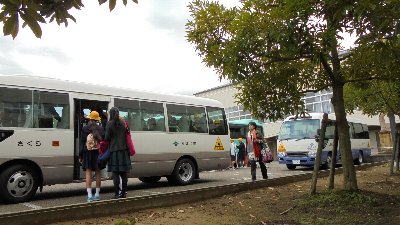 交通手段は、市のスクールバスです。かほく市ではスクールバスでの輸送が充実しており、校外地域学習がしやすいです。そしてなによりも経費がかからなくて助かります。