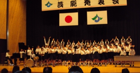 5年生が「芸能発表」に出場しました。久々の「ミックスジュース」観客席には保護者の方がたくさん応援に来ていただきました。おかげでノリノリに発表できました。