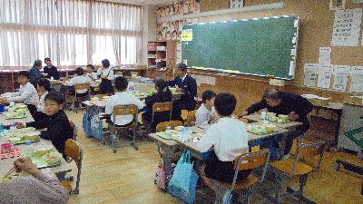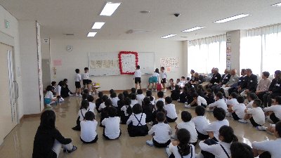 今日は3年生が18名ものいろいろなことでお世話になっている地域の方々をお呼びして感謝の会を開きました。まず、お呼びしたメンバーを紹介します。見守り隊の方々、交番所長さん、交通安全推進隊の方、主任児童委員、ぶどうの学習の先生、体育の補助の先生、校内に花を生けて下さるボランティアのお二人、お話会の先生、公民館長さん、中央図書館の職員の方、みなさんおいそがしいのにお越しいただきありがとうございました。3年生が総合的な学習の時間で出し物を用意しました。紹介から始まり、どういう風にお世話になっているかの劇やクイズ、感謝の手紙渡しなど、おもしろかったでしょうか。給食もいっしょに食べました。これからもどうぞよろしくお願いします。