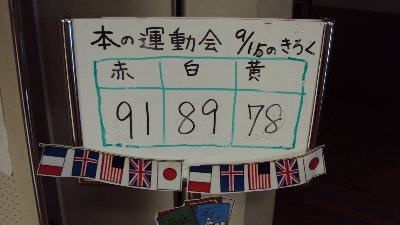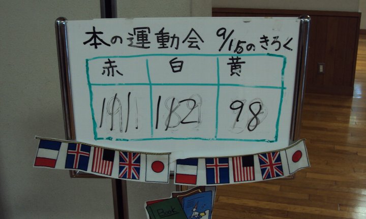 昨日紹介した「もうひとつの運動会」、色対抗読書運動会はただ今白組がトップにおどり出ました。明日が最終だそうです。優勝はどの色に?ぜひお子さんにお尋ね下さい。