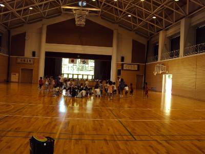 今日は体育館で学童保育の子どもたちがスポーツレクリエーションを楽しんでいました。指導者はおなじみの尾塩先生です。子どもたちの歓声が校舎まで聞こえていました。