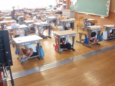 今日7月10日は、全県シェイクアウト訓練の日。高小も参加し、11時放送の指示の元、全員が机の下に避難。地震はいつ起こるか分からないのでこういった訓練をこまめに行うことが重要です。お家でも取り組んではいかがでしょうか。