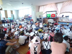 1年生41名、全員音楽室に集まり、鍵盤ハーモニカの先生から使い方を習いました。とっても楽しくわかりやすく教えていただきました。これから6年間たいせつに使い、いろいろな曲をえんそうします。