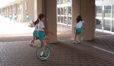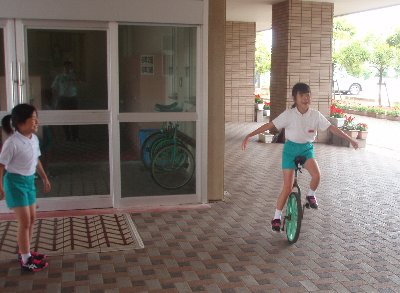 毎日休み時間に児童玄関で一輪車の練習をしている3年生がいます。始めはぜんぜん乗れませんでしたが、練習のかいあって近頃はご覧の通り。すごいですね。