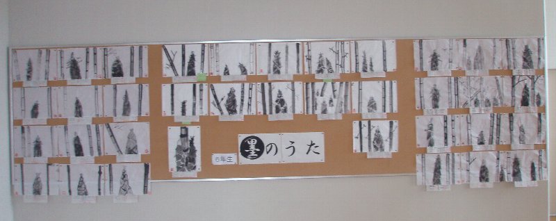 見て下さい、このできばえ。墨を使ってうまく竹を描いています。体育館2階の掲示なので、夜間開放でもご覧になれます。