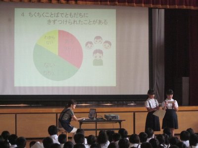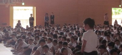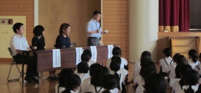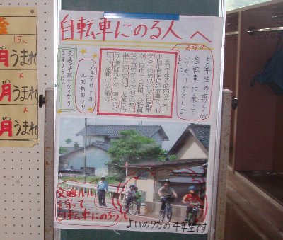 先日、白山市で小学生女子がバスにはねられ重体になるといういたましい事故がありました。集会や掲示、そして教室の安全指導で全校児童に注意しています。ご家庭でも夏休みを前に今一度自転車の乗り方、交通安全についてご指導お願いします。