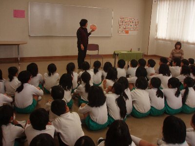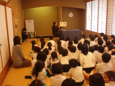 最後もいつものとおり満員の子どもたちでした。体育館ミーティングルームと和室の2カ所に分かれて、細川先生と塩山先生から楽しい読み聞かせをして頂きました。