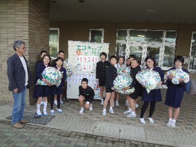 3月16日、プログラム委員が今年度最後の「エコキャップ」を回収業者の方に引き渡しました。たくさんの子どもたちの協力、ご家庭での協力により、今回は、