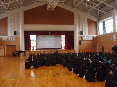 一つ目は、1年間集会でお話をしっかり聞いてくれてありがとう。この間の卒業式もそうでした。ここにたって話しているととても話しやすくて気持ちよかったです。