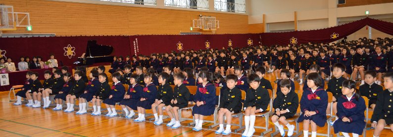 入学式では、たくさんのお客様、お家の方家族においでいただきました。温かな雰囲気の中、新入生41名が元気に学校生活の1歩をふみだしました。式の中で一人ひとり名前を呼ばれて返事をしました。どの子も大きな声で元気良く返事ができてすばらしかったです。2~6年のお兄さんお姉さんが助けてくれます。