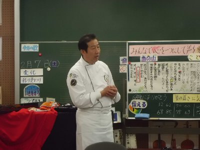 5限の授業では6年生が体育館ミーティング室で旧高松町出身の川本紀男さん(ノリオダイニングオーナーシェフ)から夢をかなえることについてお話をお聞きしました。おいそがしいところはるばるお越しいただき、ありがとうございました。地域の素材を生かしたスイートポテトもおいしかったです。