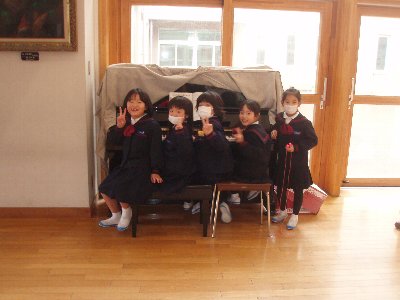 休み時間になるとピアノが好きな子どもたちが集まり、思い思いに曲を演奏しています。吹き抜けのホールなので、校舎中に響いています。 「これは音楽の時間に習っている曲だな。」「すごい上手な演奏だ、誰がひいているんだろう。」・・・・一番多いのは「ねこふんじゃった」でしょうか。(笑)