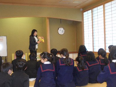 今日の長休みにミニお話会が校内いろいろな場所、いろいろな先生が読み手になって開かれました。ふだんはクラスで、今日はいろいろな場所、友だちといっしょに思い思いの場所へお話を聞きにいきました。