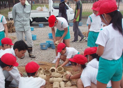 ひとつは土器作り。先日古代の土器の作り方を教えていただき、ひとり一個の土器を製作し、陰干しも終わり、今日プール横の空き地で野焼きをしました。わらとまきも用意してくださり、一日がかりで土器を焼きました。