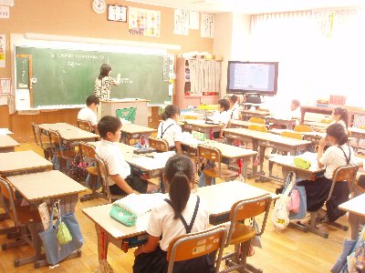 2枚目の写真は、4年算数の授業風景、空いてる座席がたくさん。