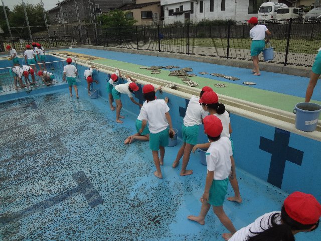 今日午後から6年生全員でプールをピカピカにしてくれました。こびりついたよごれを一生けんめいおとしてくれました。18日にプール開きを予定しています。全学年水泳の準備(水着やバスタオル)を忘れずに。そして何よりプールをきれいにしてくれた6年生への感謝の気持ちを忘れずに。